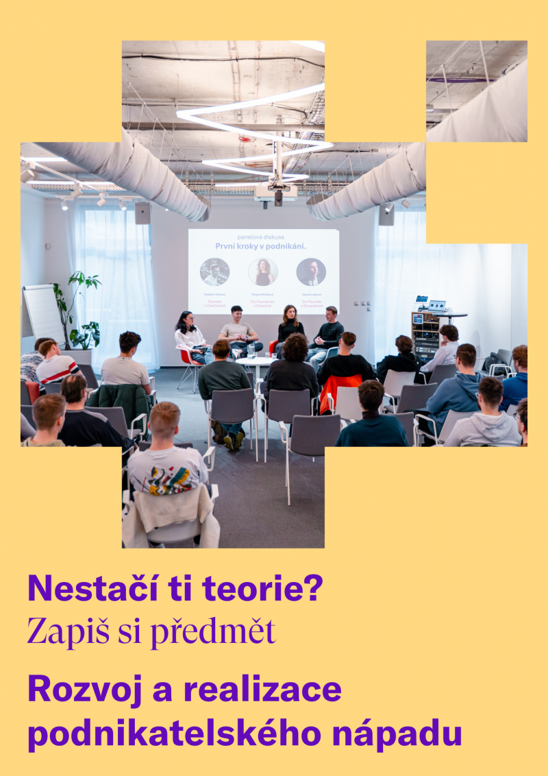 Přihlaste se do meziuniverzitního předmětu Rozvoj a realizace podnikatelského nápadu I, kde budete mít možnost: