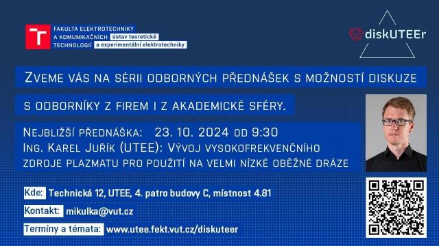 A new initiative, diskUTEEr (website in Czech), has been launched under the leadership of Jan Mikulka, head of the Department of Theoretical and Experimental Electrical Engineering (DTEEE). The schedule of events will be gradually expanded, but three meetings have already been planned at the DTEEE premises: