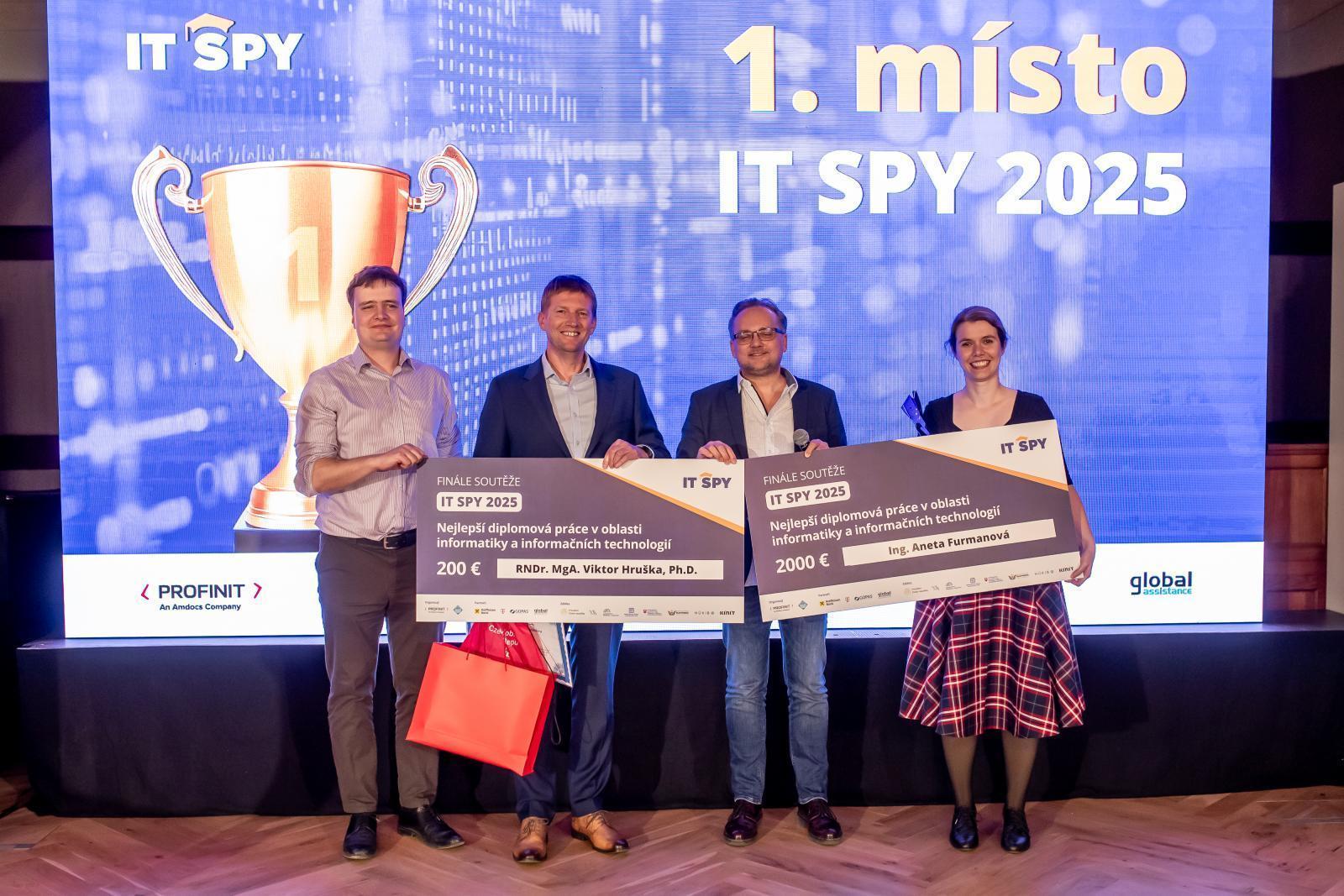 The IT SPY 2025 ceremony began in the morning with public presentations of the finalists' work and culminated in the evening with the announcement of the winners in the refectory of the Faculty of Mathematics and Physics at Charles University in Prague. The overall winner of the IT SPY competition received a prize of €2,000 from Profinit, which she can use, for example, to further develop her thesis project. The supervisor of the winning project received €200 as a thank you for the excellent preparation of his student.