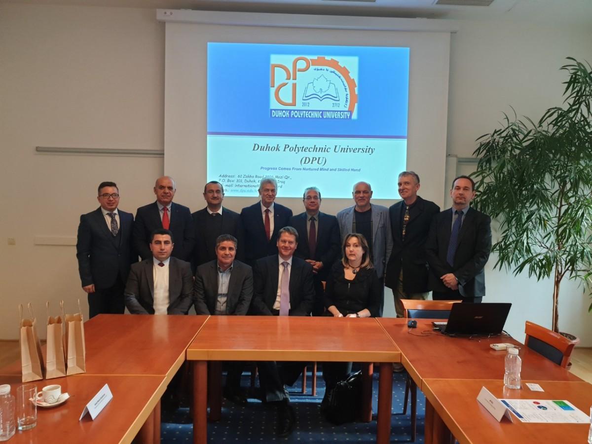 Brno University of Technology was briefly introduced by vice-rector for foreign relations to the representatives of Duhok Polytechnic University. Representatives of the Faculty of Civil Engineering, Faculty of Information Technology and Faculty of Electrical Engineering and Communication introduces their activities and possible fields for cooperation. The main aim is focused on students and academic staff exchange and cooperation in research and science. Faculty of Information Technology offered to students of Duhok Polytechnic University to attend the summer school. Represenatives from Iraq university are interested in cooperation in the fields of information technology, mechanical engineering, civil engineering or chemistry.Visit of Duhok Polytechnic University at BUT | Author: BUT archiv