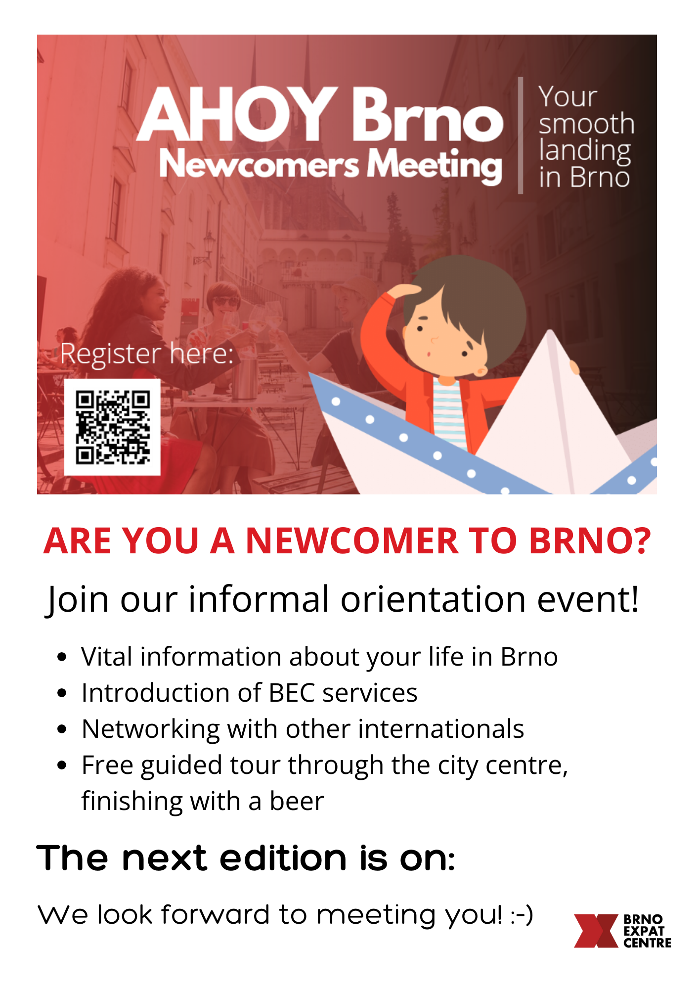 Brno Expat Centre invites all newcomers – you and your family members – to an entertaining orientation meeting + networking and a free guided tour of the city. Vital information about your life in Brno, the introduction of BEC services, and a guided tour through the city centre. If you're new in Brno, come to learn the basics and meet fellow internationals not only from your company. Book your spot (and invite your friends) here: https://www.brnoexpatcentre.eu/events/