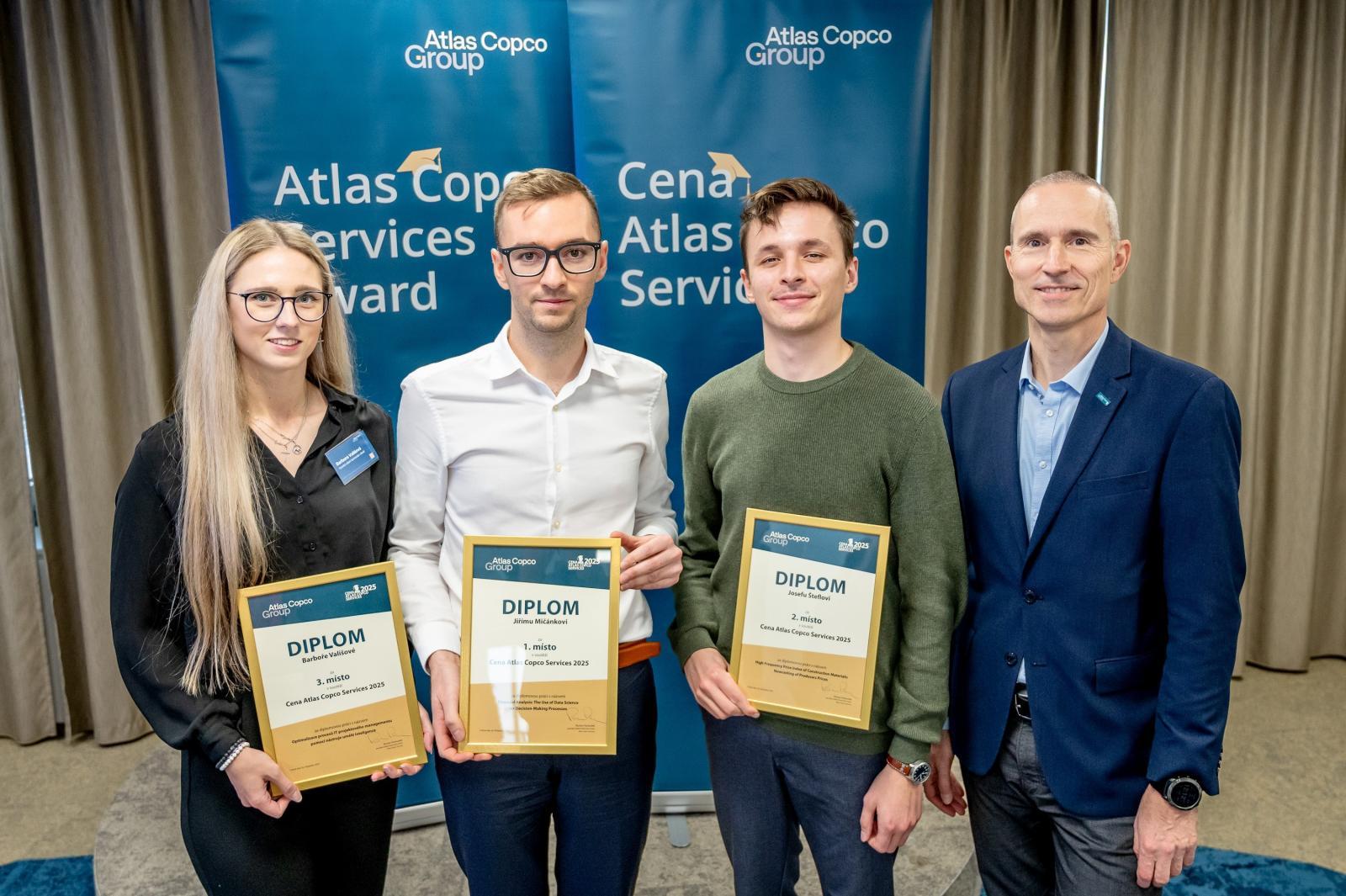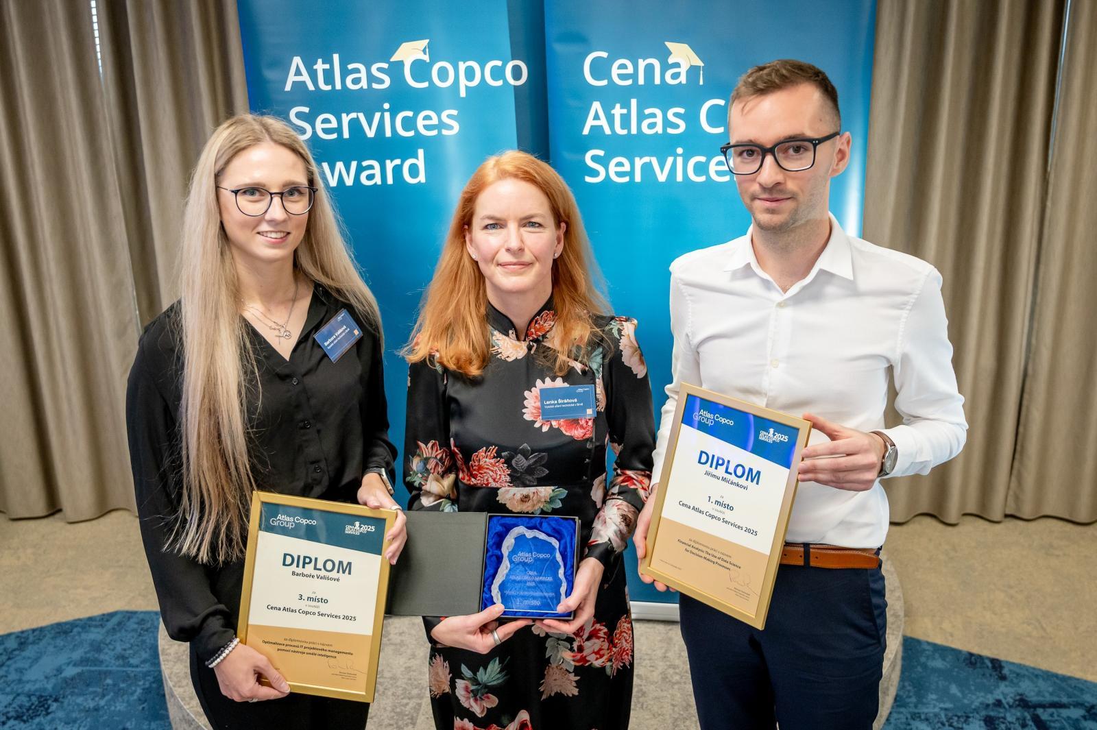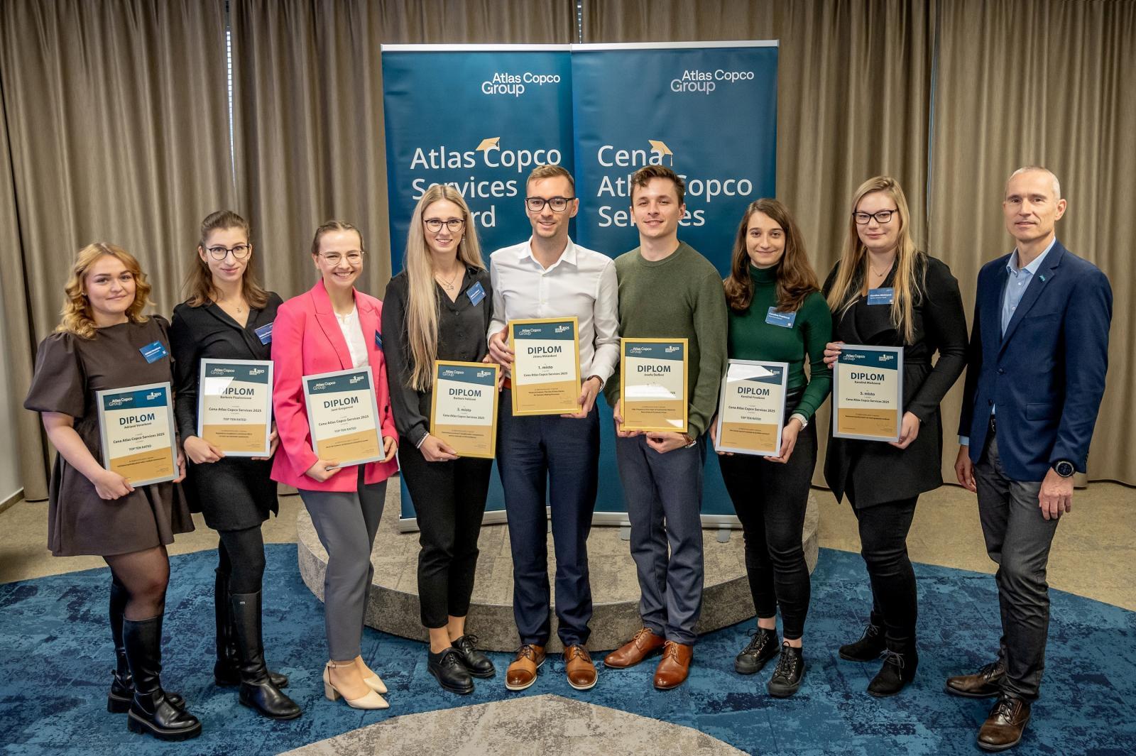 The ceremonial announcement of the results of the seventh annual Atlas Copco Services Award competition, in which nearly forty graduates participated, took place on Wednesday, November 26, in Brno. The three most successful students shared prizes totaling CZK 60,000, with the overall winner receiving CZK 30,000.
