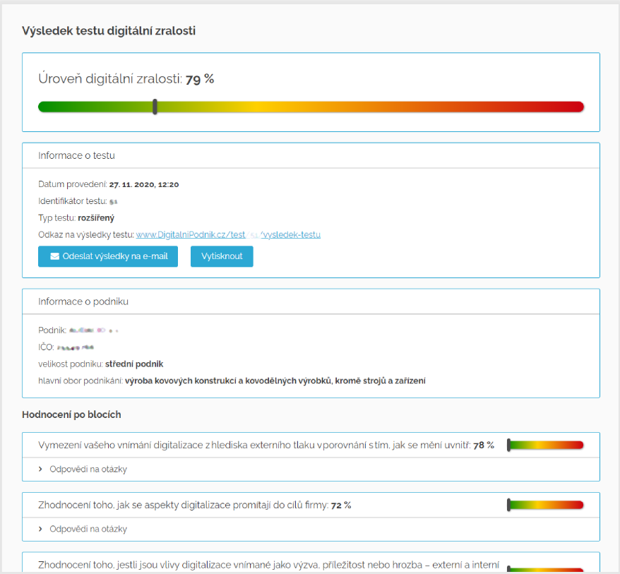 A sample of the digital maturity test result in the form of a coloured traffic lightScientists from FBM therefore first focused on data collection to map the business ecosystem. For this purpose, they have developed a test platform digitalnipodnik.cz, which, unlike similar foreign solutions, is non-commercial and publicly accessible. It allows to collect data from respondents and on this basis to assess the level of digital maturity of SMEs, which based on the ability to adapt to the digital competitive environment. Only after data analysis can digital transformation be considered to help innovate the current business model.