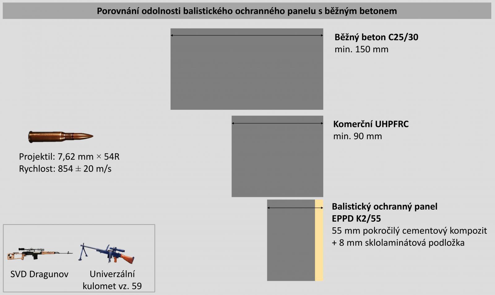 “Our advantage is that we can make BPP with extremely good parameters even from relatively ordinary aggregates. We don't need high-strength aggregate, which is very expensive, and yet we are getting high strength and ballistic resistance values,” says Šoukal, referring to an important motivation for scientists in developing BPP, which is to optimise costs while maintaining high resistance. Since the other components of the mixture do not come from laboratory research and are commonly available on the market, the researchers managed to reduce the price of BPP to an acceptable level of about CZK 25,000 per m³. The UHPFRC category, to which the BPP material belongs, is priced up to CZK 100,000 per m³. Also, compared to armour-plated rolled steel, BPP is about three times cheaper for the same area weight and ballistic resistance.