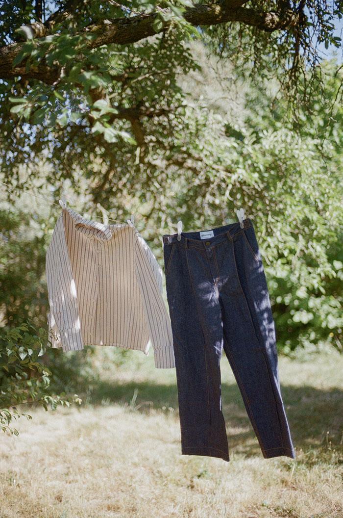 Today, corners are cut on everything, but we want clothes that more people can wear and that last for years. Ideally, so they can be passed on and adjusted by someone else. We take inspiration from history—garments used to be designed to be altered: hem allowances for lengthening trouser legs, pleats at the waist, buttoned adjuster tabs. We also use elastic in the waistband—it’s comfortable to wear and provides more freedom of movement.