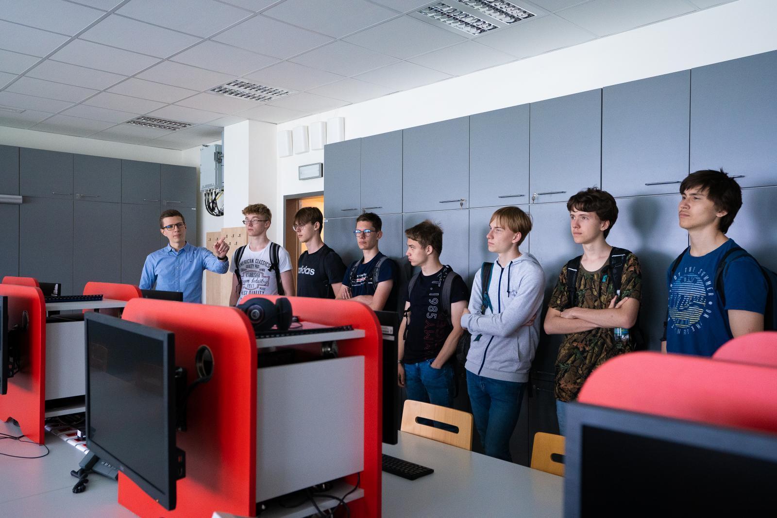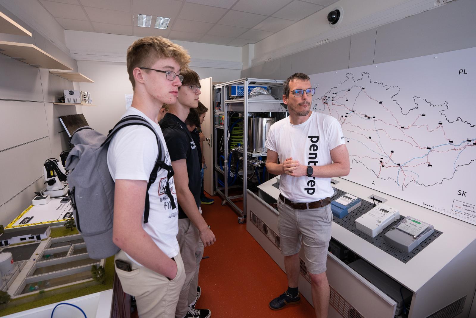 Students of the Matyáš Lerch Gymnasium in Brno at FEEC BUT | Author: Nikola ČíkováThe third group consisted of students from the Secondary Technical School in Třebíč, which a student of the BUT Master's programme in Information Security, Willi Lazarov, also attended. He is also the creator and lecturer of the Cyber Arena BUTCA (Brno University of Technology Cyber Arena). "When I was in high school, nothing like this was taught and not many people were interested. Today, information security is already included in education," recalls the student who prepared the play's script for the high schoolers: "Students from Třebíč underwent basic training in the Cyber Arena earlier this year. We prepared a more advanced scenario focused on penetration testing of smart meters to show them that testing real devices in practice is possible."