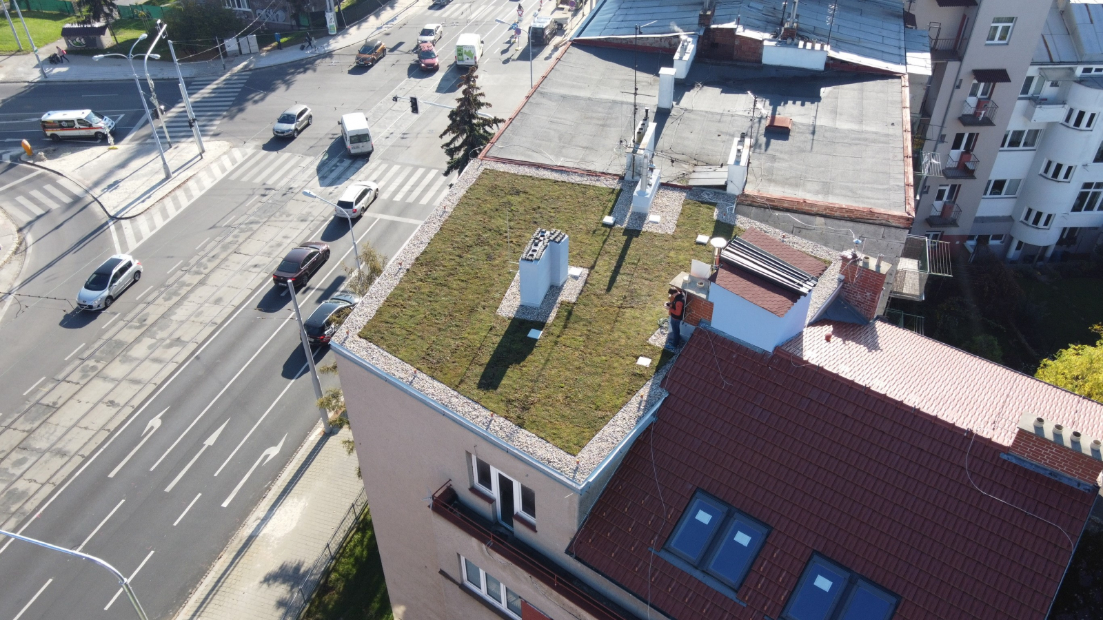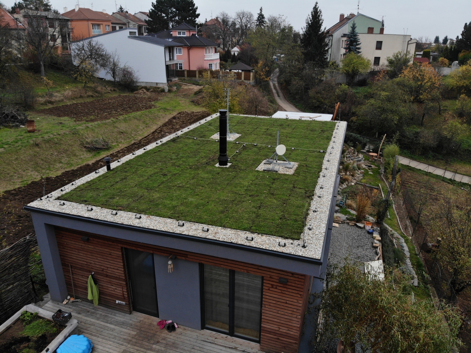 A green roof can be a completely natural alternative to standard roofing. | Author: archives of David BečkovskýRoofs covered with plants appear as nature islands in the concrete city from an aerial view. Thanks to their ability to cool the surroundings, they not only improve the air in the streets but also serve as an ideal foundation for solar panels. These panels, benefiting from the cooling effect of the green roof, do not overheat and function better. Moreover, transparent and semi-transparent panels, which do not shade the plants, are now available. A flat bare roof gains several useful functions this way.