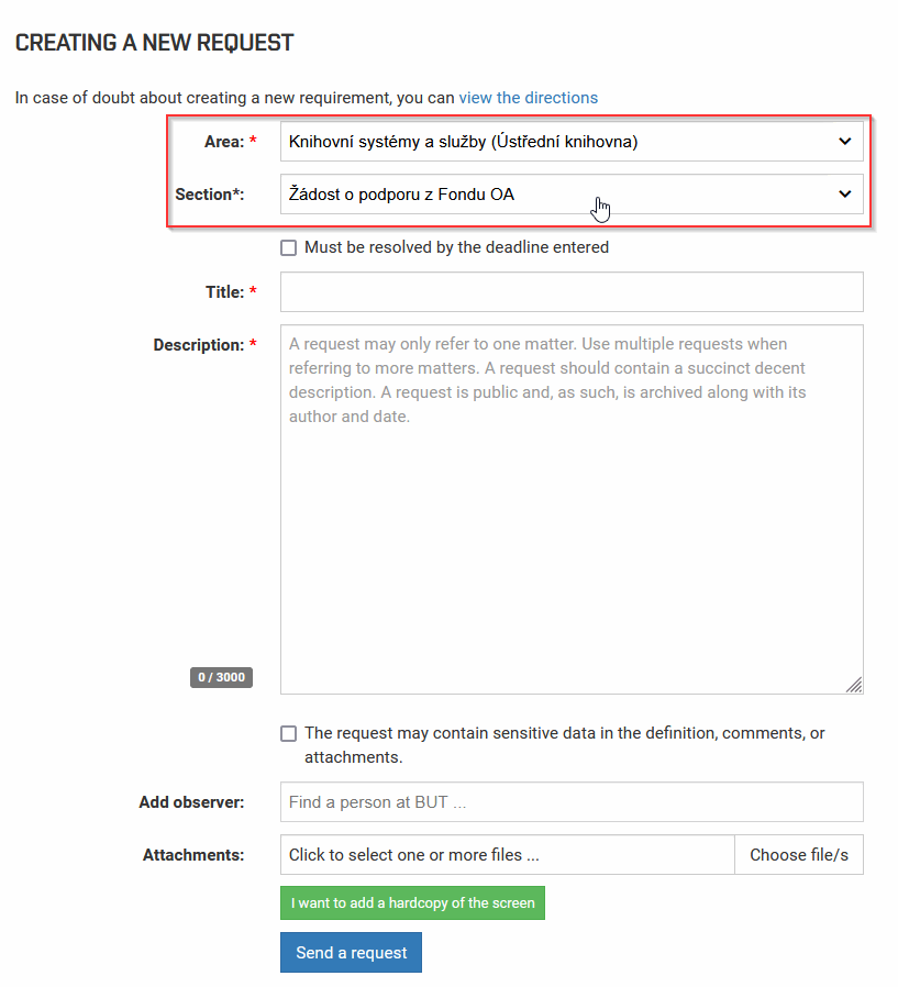 Submission of the application is done in the Requests module on the BUT Intranet.