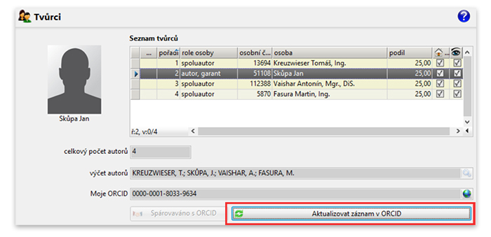 If any data changes in the BUT IS, you can update the record. Just click on the Aktualizovat záznam v ORCID.