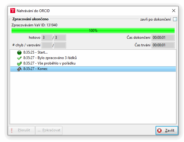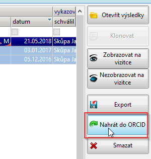 If you want to submit multiple records to ORCID at once, you can do so from the Results List screen, where you select the records (you can click on individual rows while holding down the CTRL key). Then just click on Nahrát do ORCID in the right sidebar.