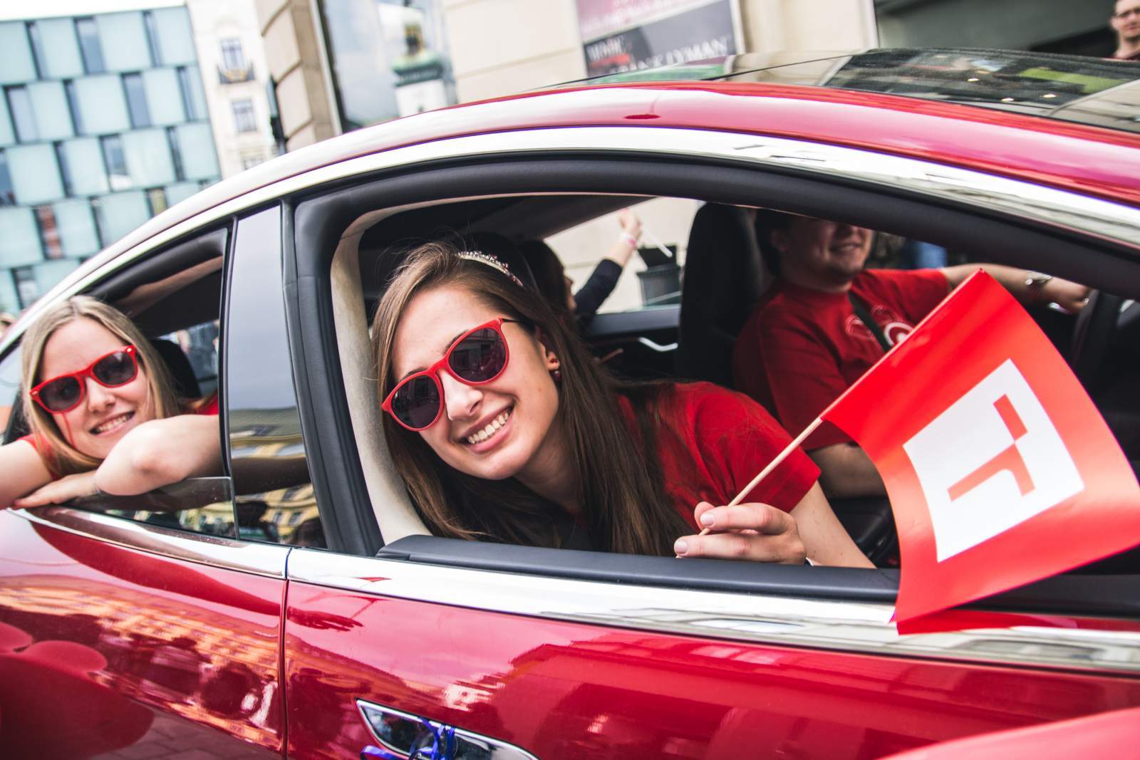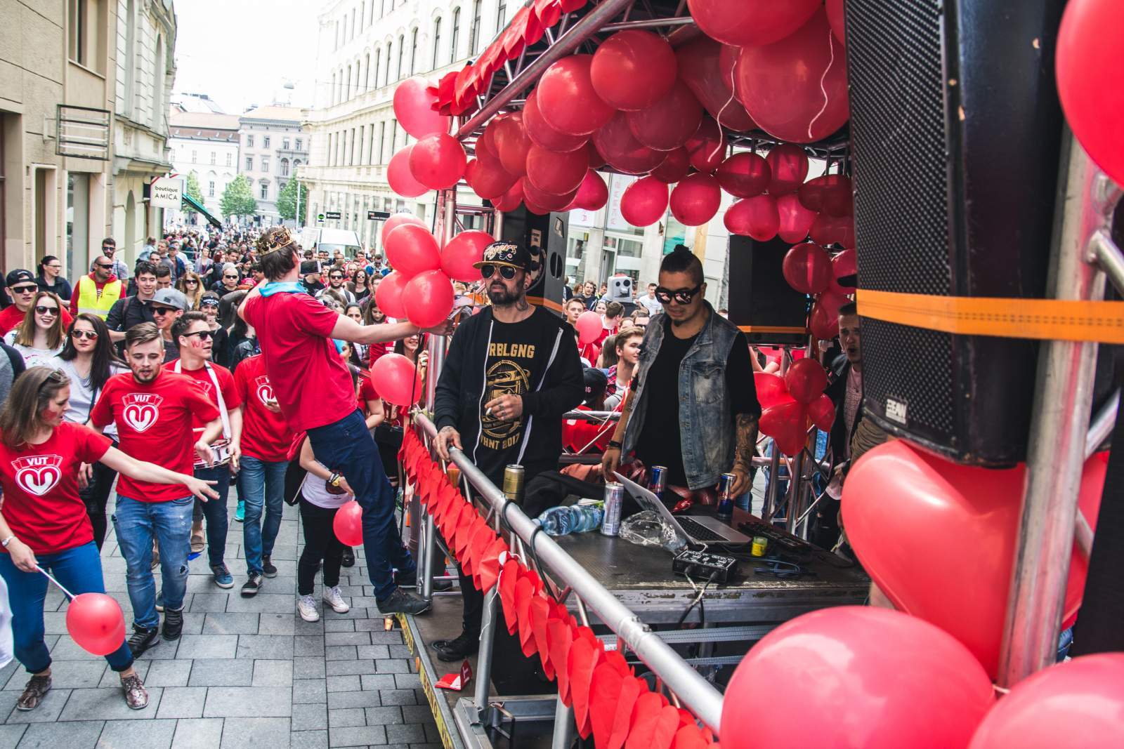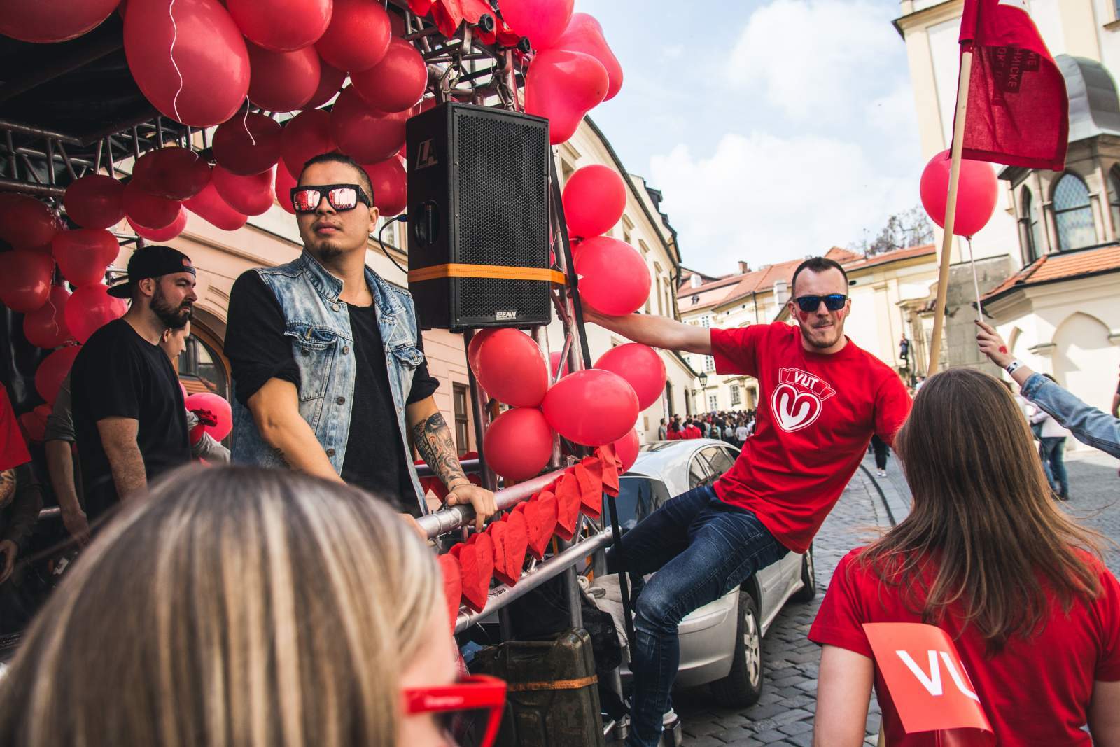 Celodenní program odstartoval v sobotu 6. května na náměstí Svobody, kde studenti brněnských univerzit zahájili svůj průvod na výstaviště. Nepřehlédnutelný červený tým VUT dopravázely i dva vozy Tesla, které studentům zapůjčili členové kolegia rektora. Kandidáti na krále a královnu tak měli velmi reprezentativní příjezd na výstaviště. Z otevřeného vozu pak průvod doprovázel koncert zpěváka Marpa, který se stal hlavním patronem brněnské techniky.