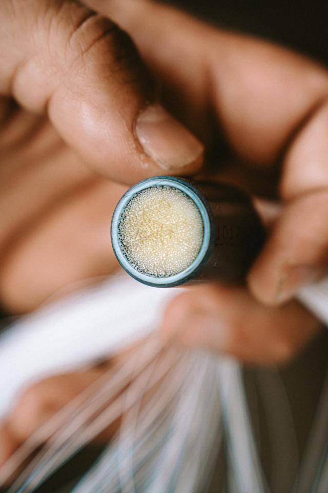 Používáme membránová dutá vlákna ve svazcích po 1380 vláknech. Mají póry velikosti průměru lidského vlasu, takže jsou pouhým okem neviditelné, ale separují plyn od kapaliny. V hnojivu je amoniak rozpuštěný a plynný. Snažíme se rozpuštěný amoniak dostat do plynné formy – parciální tlak ho nutí odcházet z kapaliny, projít póry membrány, a pak se absorbuje do další kapaliny. Je to proces přestupu hmoty na rozhraní kapalina–plyn.