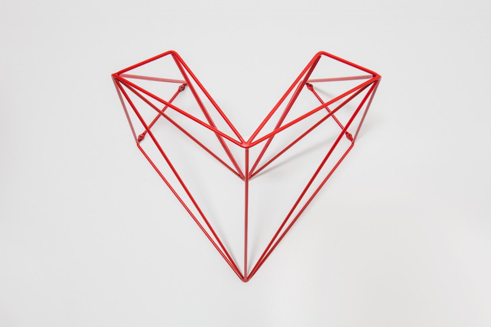 Když uvidíte Srdce, ani byste neřekli, že jde o originální držák na kolo. Jeho funkce totiž není jen praktická, ale krásně oživí interiér i v případě, že na něm zrovna nemáte zavěšené kolo. Slouží tedy i k dekoraci místnosti. Základ tvoří vzdušný trojúhelníkový tvar z ocelové kulatiny, která je velmi pevná a dokáže rozložit váhu rovnoměrně. Autor myslel také na pohodlné usazení kola do držáku. „Kolo není třeba umístit do přesného bodu, jak to mají jiné držáky, ale samo sjede do ideální polohy díky sklonu vrchních částí,“ vysvětlil Martin Foret. A právě to byl jeden z aspektů, kromě designu, který porotu zaujal.
