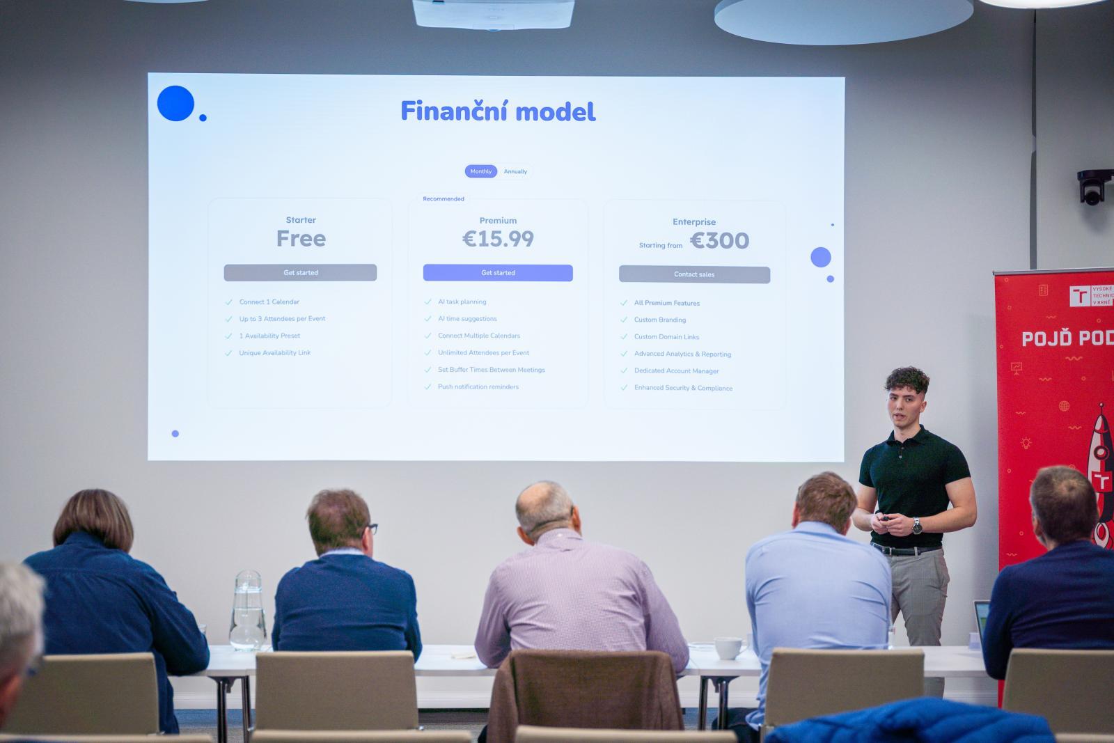 Inovativní nápad zaujal i odbornou porotu, která mu udělila první místo v univerzitní soutěži Cena podnikavosti studenta VUT. Díky tomu získal Vojtěch Oravec, který se do soutěže přihlásil především proto, aby obdržel zpětnou vazbu a podporu pro svůj projekt, celou řadu kontaktů a možnost věnovat se technologii naplno. Nápad na vytvoření aplikace přitom dostal úplnou náhodou, když se na střední škole zapojil do projektu, jehož součástí byla i komunikaci s mentorem. Ten totiž shodou okolností používal konkurenční produkt Calendly a nebyl spokojený. „Dlouho jsem si přál založit start-up, takže jsem se jen chytil příležitosti,“ vzpomíná Vojtěch.A proč zrovna oblast efektivity a správy času? Podle autora projektu je to téma, které s lidmi v posledních letech hodně rezonuje. „Každý chce být efektivní a ušetřit čas, kde se dá,“ říká a dodává, že ušetřené hodiny se dají jednoduše přepočítat na ušetřené peníze, takže je pro něj poměrně jednoduché přesvědčit klienty, aby za takovou službu platili. On sám je navíc hodně organizovaný člověk, který má všechno zaznamenané v kalendáři a vždy se podle něj řídí, takže vytvořit produkt jako OneCalend pro něj bylo naprosto přirozené.Promyšlený projekt získal první místo v univerzitní soutěži. | Autor: Václav Koníček