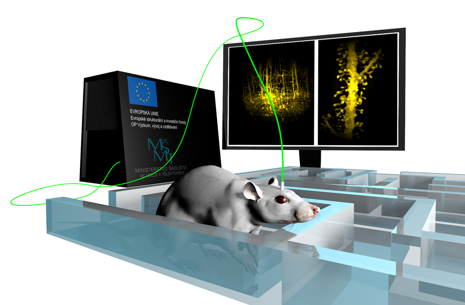 bude ještě nějakou dobu trvat. Zatím provádějí experimenty na myších. „Veterinář fluorescenčně značenou myšku uspí, v anestezii jí vyholí srst na hlavě, nařízneme kůži a vyvrtáme do lebky malý otvor, takzvané kraniální okno. Tím pak zavádíme optické vlákno do mozku,“ popisuje Stibůrek, který doktorské studium zasvětil právě vývoji holografického mikro-endoskopu.