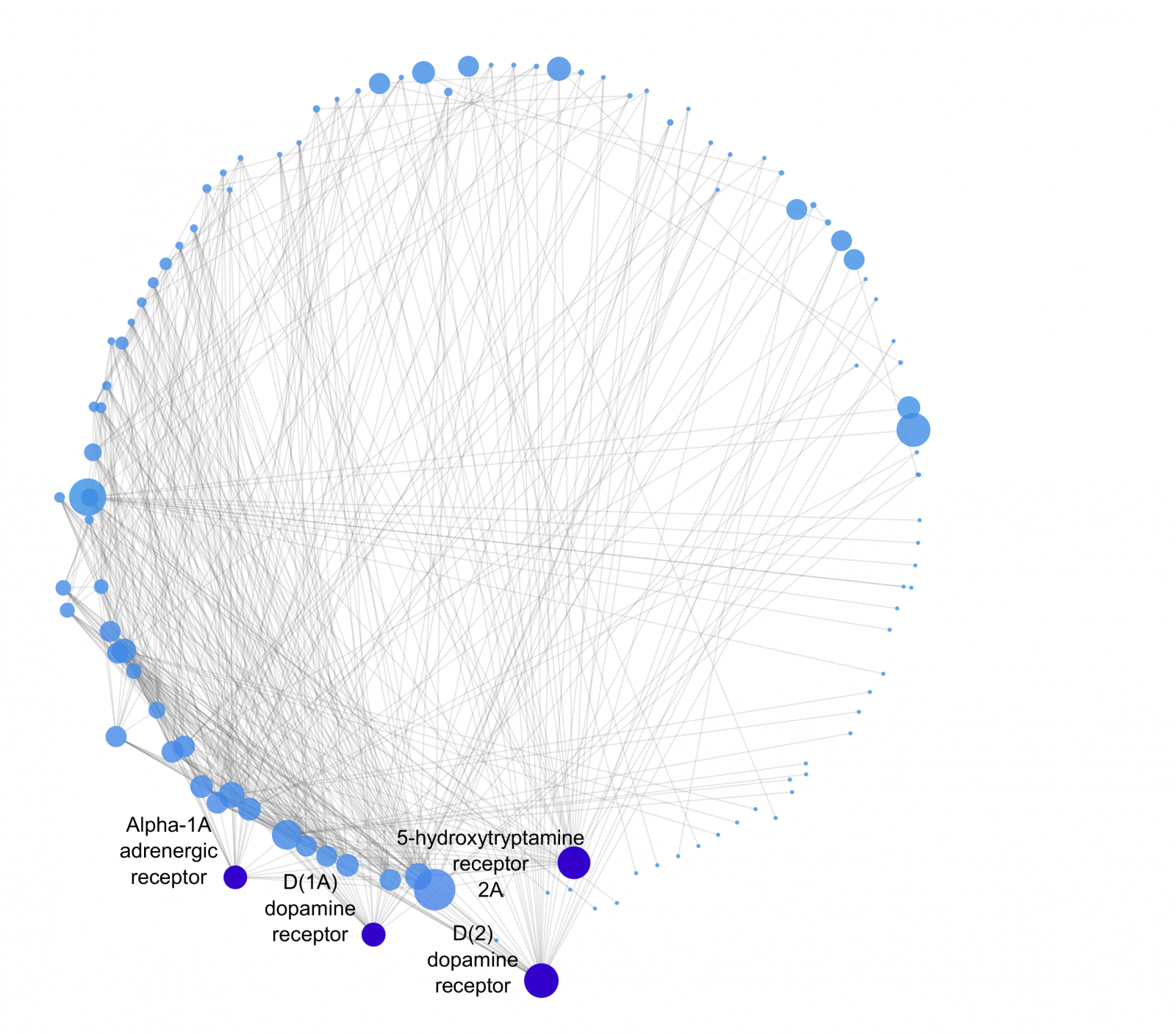 Síť léčiv a proteinů s vyznačenými nejvýznamnějšími proteiny | Autor: archiv Jany Musilové