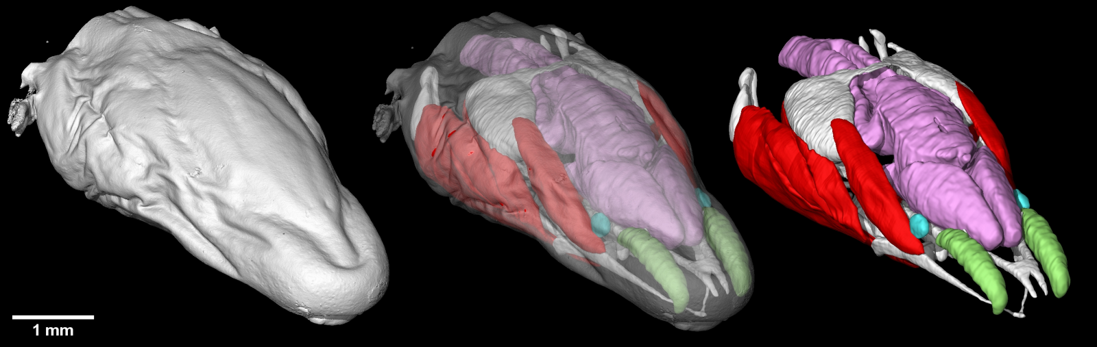 Samotné rentgenování vzorků zabralo doktorandce jeden rok, dalších pět let však trávila zpracováním dat. „Nebylo jednoduché odlišit měkké tkáně od chrupavčitých – například ve strukturách macarátova oka, která jsou zakrslá uvnitř hlavy. Musela jsem vše průběžně konzultovat s biology, speleology a studovat i starší ručně kreslené publikace,“ vysvětlila doktorandka.