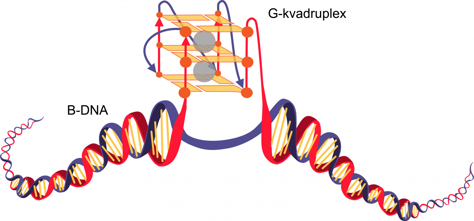 Ve své práci se Michaela Dobrovolná zaměřuje především na nekanonické struktury DNA, což jsou struktury, které vznikají za specifických biologických podmínek a liší se od klasického genového uspořádání. „Když se řekne DNA, každý si představí tradiční dvoušroubovici tvořenou dvěma vlákny. Dalo by se říct, že nekanonická struktura DNA dělá nezbednosti s tvarem tradiční dvoušroubovice a vzniká třeba jen na jednom vláknu, vytváří různé smyčky a podobně,“ vysvětluje a dodává, že ona nejčastěji zkoumá G-kvadruplexy – struktury, které jsou tvořeny pouze jednou nukleovou bází, guaninem, párující se mezi sebou. Jedná se tedy o jakousi biologickou odchylku, kdy se v řetězci nespojují odlišné nukleové báze, ale pouze jeden druh sám se sebou, díky čemuž na šroubovici vznikají malé uzlíky a mění se její struktura.Podobné odchylky se podle mladé vědkyně zkoumají proto, že by v budoucnu mohly odhalit klíčový biologický význam. „Tím, že nejde o úplně standardní struktury, tak v procesech jako je replikace, transkripce i translace DNA můžou dělat buď neplechu, nebo naopak napomáhat určitým procesům,“ uvádí Dobrovolná.V současnosti se význam těchto struktur zkoumá v nanotechnologiích i v medicíně, jelikož se nachází v důležitých regulačních oblastech a mohou ovlivňovat zapínání a vypínání genů, stabilitu genomu či vznik některých onemocnění. G-kvadruplexy mají potenciál například při zpomalování množení virů či jako nosiče molekul, jejich destabilizace potom může ovlivnit nádorové bujení. „Jelikož se se zvýšenou frekvencí nachází například v promotorech onkogenů, diskutuje se o tom, jestli by tyto struktury nemohly sloužit jako takový zámek pro nasedání molekul, aby mohlo docházet k přepisu DNA,“ dodává Dobrovolná. Výzkum je však poměrně v začátcích a prozatím není možné aplikovat jeho výsledky do klinické praxe.Ilustrace G-kvadruplexu.