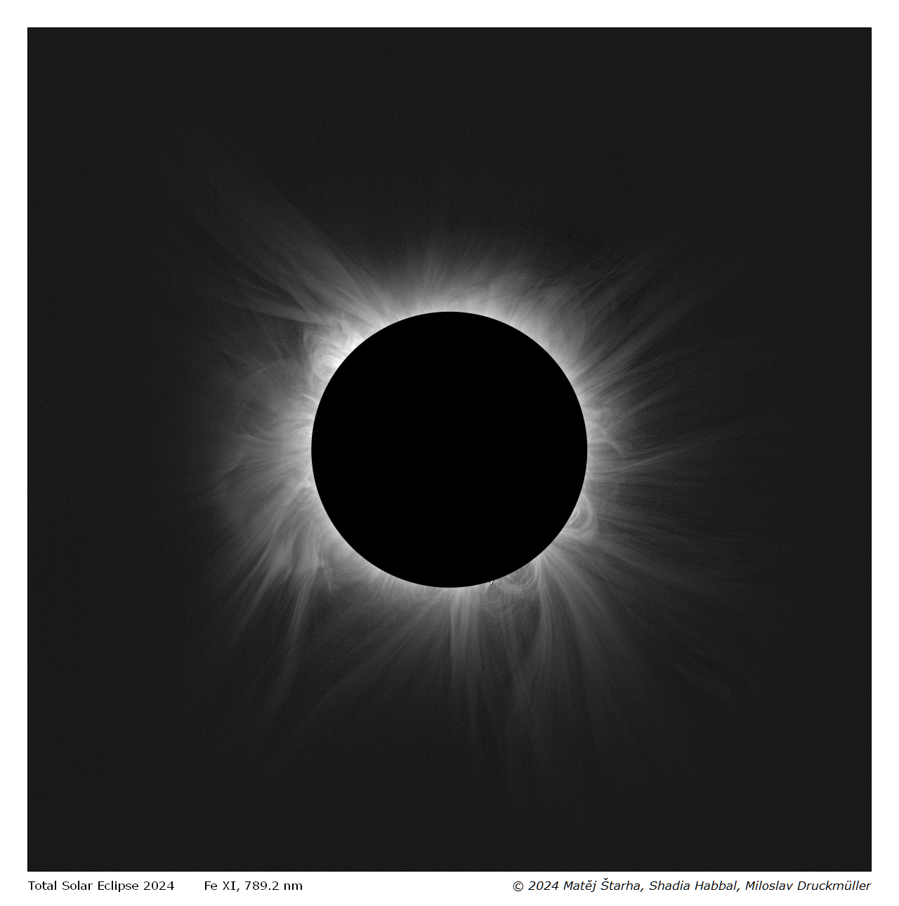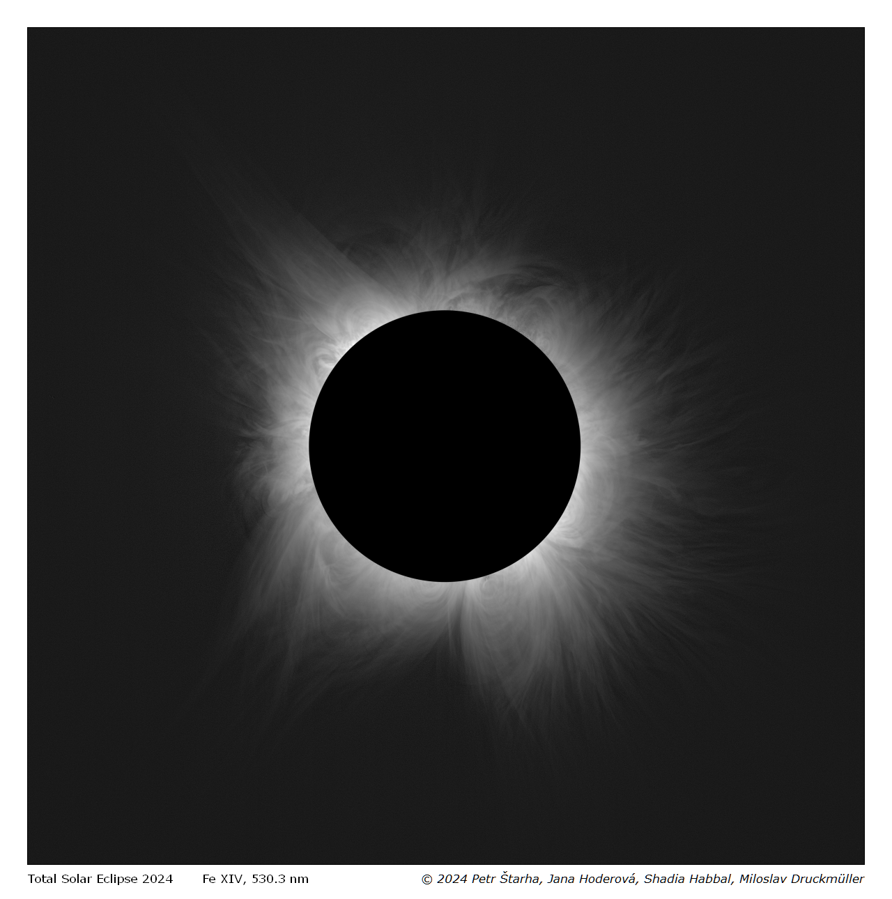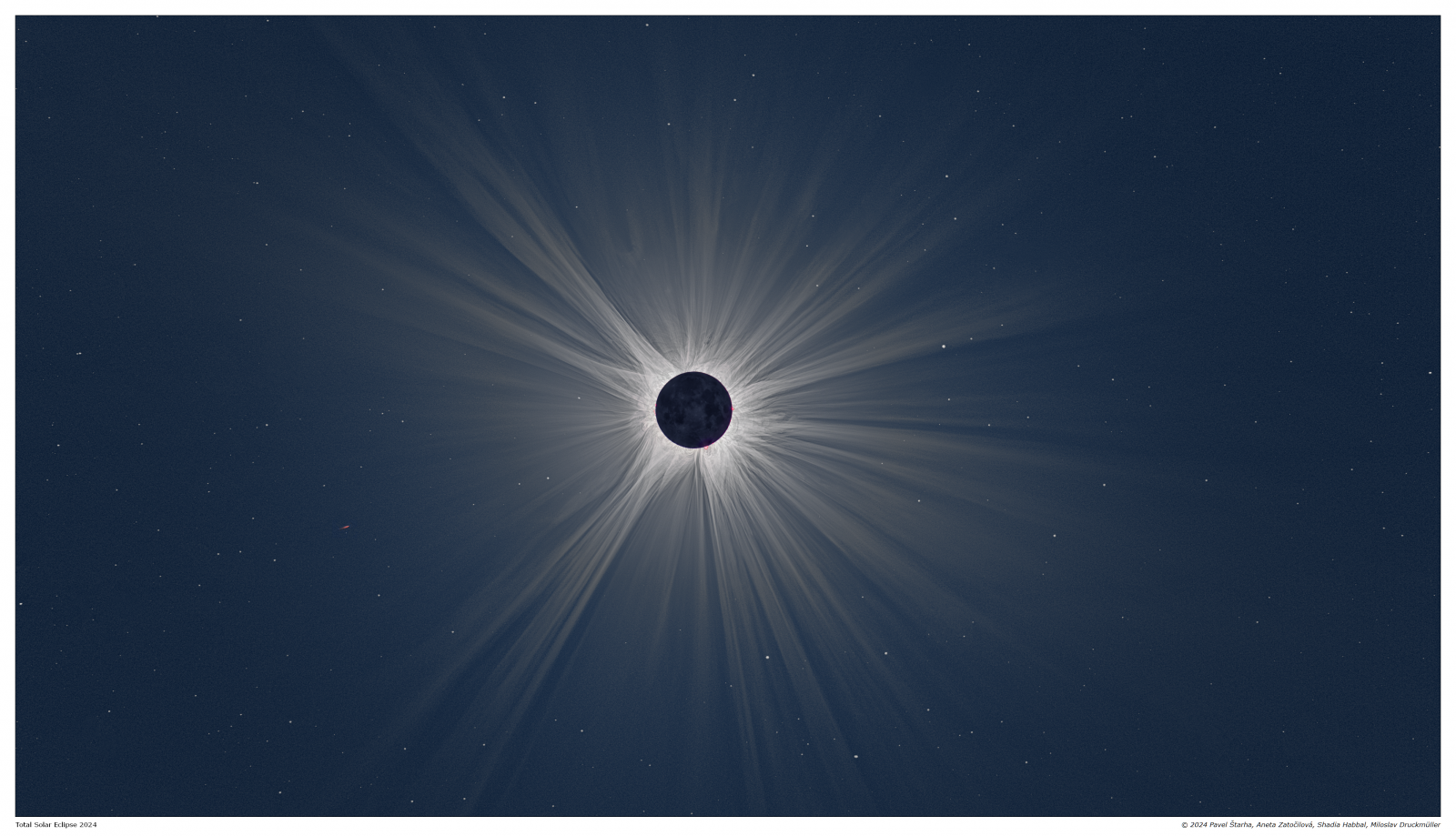 Letos šel pás měsíčního stínu přes Severní Ameriku, úplné zatmění zde nastalo 8. dubna. Nemohl u toho chybět ani mezinárodní vědecký tým z Fakulty strojního inženýrství VUT v Brně a Astronomického institutu Havajské univerzity. Z pozorování vzniklo celkem 5 TB dat, která se po týdnech práce matematika Miloslava Druckmüllera proměnila v jedinečné fotografie letošního úplného zatmění Slunce.