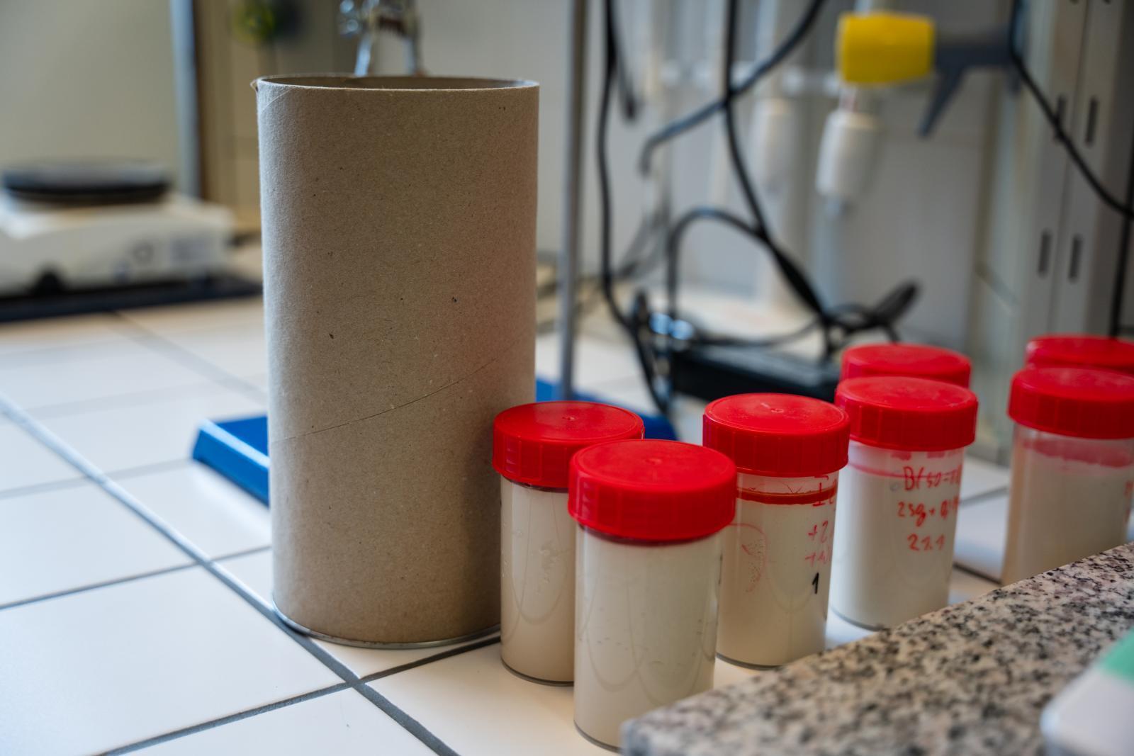 Při vývoji nových lepidel je zásadní detailní materiálová rešerše. Zkoumá se složení plniv (např. vápence, kaoliny, mikroplniva) a jejich kompatibilita se systémem. Klíčovou surovinou je dextrin vznikající úpravou škrobů, např. z brambor, kukuřice nebo fazolí. Různé druhy dextrinů se liší strukturou a vlastnostmi, a proto se jejich výběr přizpůsobuje konkrétní aplikaci. Například bramborový dextrin je vhodnější pro tekutější lepidla, zatímco fazolový poskytuje vyšší viskozitu „Testovali jsme v Polsku jeden vzorek s fazolovým dextrinem na ochranné hrany, které jsou i součástí projektu. V tomhle případě šlo o takzvané U-hrany – do nich se třeba vkládá monitor, aby byl chráněný ze všech stran,“ popisuje Tomáš Solný. „Přijeli jsme s kolegou, nasadili lepidlo na stroj – bylo sice trochu hustší, ale to by ještě nevadilo. No a uprostřed zkoušky vypadla elektřina. Ten test jsme domlouvali čtyři měsíce, dva roky tam proud nevypadl, a zrovna když tam jedeme, tak bum,“ směje se.Jednou z největších výzev při vývoji lepidel nové generace je dosažení požadované elasticity spoje. Tato vlastnost je klíčová zejména při výrobě tenkostěnných papírových trubic a ověřuje se přímo v provozu u zákazníka – v laboratorních podmínkách ji totiž nelze zcela nasimulovat. „Je důležité vnímat rozdíly mezi laboratorním měřítkem a poloprovozem. Není to tak, že něco jen x-krát vynásobíte,“ vysvětluje vědecký pracovník Jan Hajzler. Tomáš Solný dodává: „Chování směsi v laboratoři a ve větším množství – třeba 150 nebo 1 500 kilo – je úplně jiné a může nás zaskočit.“Dextrin je materiál, který přírodu nezatěžuje – naopak je snadno biologicky odbouratelný a přitažlivý pro bakterie, což ovšem představuje další technologickou výzvu. Je nutné vymyslet způsob, jak zakonzervovat tekutý produkt na přírodní bázi, tak aby mu bakterie neškodily.