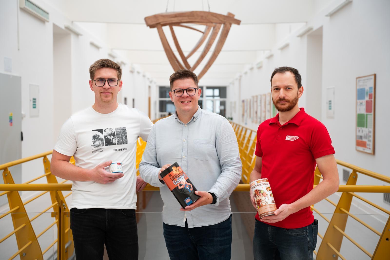 Cesta k uplatnění lepidel není bez překážek. Právě jejich překonávání je jedním z cílů projektu. Je třeba dosáhnout toho, aby použití nových lepidel bylo pro zákazníka co nejkomfortnější a nevymykalo se jeho současným standardům. „Dextrin je velký přítel člověka – chytne se úplně všude, i do vlasů,“ říká Tomáš Solný s úsměvem. „Je to lepkavá záležitost, a tím to všechno začíná. Technologie se může ucpávat – a taky se ucpává. Když se vyrábějí homogenizované sypké směsi, materiál může takzvaně klenovat, tedy vytvářet oblouky, které brání jeho volnému přesypávání. A pokud do směsi přidáváte nějaká aditiva, která potřebujete rovnoměrně rozptýlit v řádu tun, tak se vám téměř jistě rozptýlí nerovnoměrně. Těch komplikací je celá řada.“Tomáš Solný, Jan Hajzler a Michal Marko z Centra materiálového výzkumu FCH VUT. | Autor: archiv FCHVývoj lepidla přináší však také spoustu radosti z pokroku a překvapivých výsledků. „Je to pestrá směsice potřebných úkonů, které je třeba vykonat, a vždy se najde něco, co je třeba vychytat,“ popisuje Tomáš Solný. Největší odměnou je podle něj okamžik, kdy lepidlo projde testy u zákazníka a ti s úžasem sledují jeho funkčnost. „Nevěřícně kroutí hlavou, že tohle se nikdy takhle ještě nepovedlo, a někdy jsou opravdu nadšení. To je pak pocit poctivě odvedené práce,“ dodává.Tým se neobává ani tlaku, který přinášejí vysoká očekávání ze strany zákazníků a skutečnost, že projekt má velký ekologický i průmyslový potenciál. „Máme rádi velké výzvy a nebojíme se do nich jít. To, co je jeden rok nemožné, se během projektu většinou ukáže jako možné, skoro až lusknutím prstu,“ říká vědecký pracovník Michal Marko. Tomáš Solný k tomu doplňuje: „Po prvních třech měsících bychom tohle asi neřekli. Ale výsledky přišly díky společnému úsilí úplně všech. Shrnul bych to latinským výrokem Per aspera ad astra, přes překážky ke hvězdám.“Z celé řady momentů, které vývoj doprovázely, výzkumnému týmu v paměti nejvíce utkvělo, jaký obrovský posun se v účinnosti lepidla podařil. „Když jsme začali dávat dohromady základní formulace materiálů, tak jsme se několik týdnů nebyli schopni na interním odtrhovém testu dostat pod minutu, kdy by papíry po přilepení držely pohromadě. A teď už řešíme, jestli lepidlo lepí za 5, 10 nebo 15 vteřin,“ říká Tomáš Solný a dodává, že tehdy šlo o lepidlo, které fungovalo až po dvou hodinách. Dnes tak mají k dispozici lepidlo vteřinové.