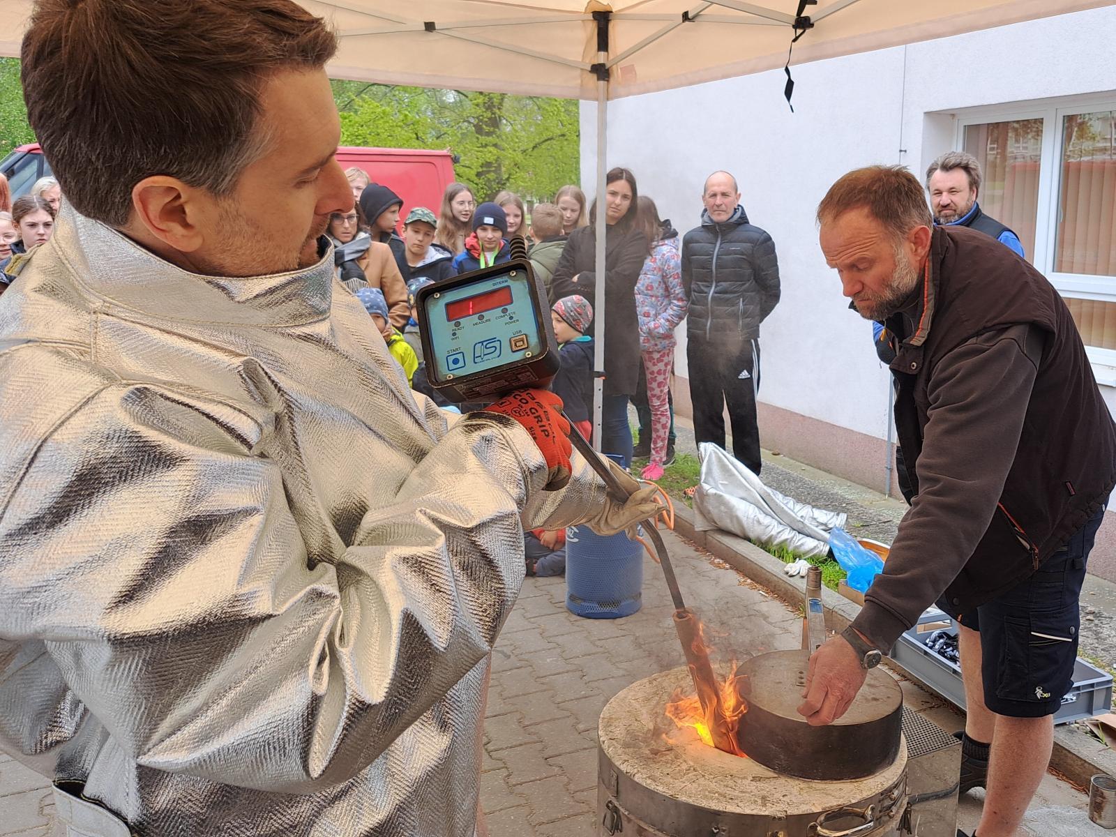 „Zvon váží čtyři a půl kila a má průměr dvě stě milimetrů, jedná se tedy spíš o menší kousek,“ popisuje Ondřej Štoček z Ústavu strojírenské technologie. Ve fakultní slévárně pracuje jako technický pracovník, podílí se na výrobě komerčních odlitků a podpoře bakalářských a diplomových prací. Občas se chopí odlévání uměleckých odlitků a pak z toho jsou krásné věci. Jeho umělecké odlitky podle předlohy jiných autorů už VUT mnohokrát vystavovalo na Mezinárodním strojírenském veletrhu, a třeba populární Fegurdi sochaře Václava Sigursona Kostohryze prošli také rukama Ondřeje Štočka.