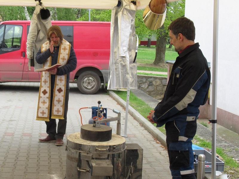 Dvojice kolegů z Ústavu strojírenské technologie se tak 22. dubna vydala do obce, kam se na odlévání přišli podívat tamní obyvatelé a žáci základní školy. A bylo to prý velmi vděčné publikum. Pro Ondřeje Štočka se nejednalo o první zkušenost s odléváním zvonu. „Nejsem samozřejmě zvonař, to je zcela samostatný obor, ale nějaké zvony už za sebou mám. Největší, pětatřicetikilový, je v městském parku v Tišnově,“ vzpomíná Štoček. Odlévání se povedlo a ořechovští se tak 1. května mohli vydat na tradiční pouť na Peregrinek. Dorazilo na tři sta věřících, kteří přihlíželi požehnání nové zvonice.