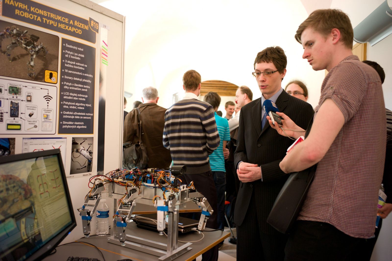 Stabilita, rychlost, energetická náročnost, dynamika pohybu. To jsou kritéria, podle kterých se dá hodnotit chůze. Nebo také programovat. Třeba na šestinohém kráčivém robotovi. Kompletně ho navrhl, vyrobil a nyní ho testuje Marek Žák z Fakulty informačních technologií. Student VUT v Brně si tento projekt zvolil jako téma své diplomové práce. A vyhrál s ním na konferenci Excel@FIT 2015 v kategorii Technologická úroveň. Pomocí experimentů s pohybovými algoritmy Žák zkouší, jak robota rozpohybovat nejvhodněji pro dané prostředí. I když se to možná na první pohled nezdá, jeho projekt rozhodně nemusí skončit v šuplíku, naopak, má široké využití v praxi. „Kráčivé podvozky se dají nasadit tam, kde klasické kolové a pásové selhávají. Tedy především v náročných terénech,“ vysvětlil Žák. Jako příklad uvedl stavby v hlubokých údolích, kam se těžko dostává technika. Šestinohý robot může stejně tak posloužit pro kosmický výzkum při pohybu na různých vesmírných tělesech nebo pomůže armádě s přesunem vybavení či průzkumem terénu. Potenciál Žákova projektu je také ve výzkumu pohybových algoritmů.