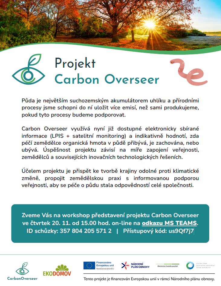 Představíme projekt Carbon Overseer, který využívá moderní technologie (LPIS, satelitní monitoring) k hodnocení změn v organické hmotě půdy. Projekt ukazuje, jak mohou data, inovace a technologie pomoci chránit půdu a krajinu před důsledky klimatické změny.