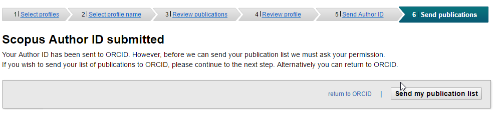 Dalším a posledním krokem je odeslání seznamu vašich publikací. Stačí pouze potvrdit tlačítkem Send my publiaction list.