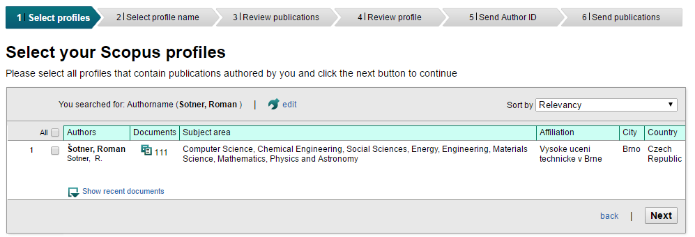 Zaškrtnutím vyberete profily, které jsou opravdu vaše, a kliknete na tlačítko Next.