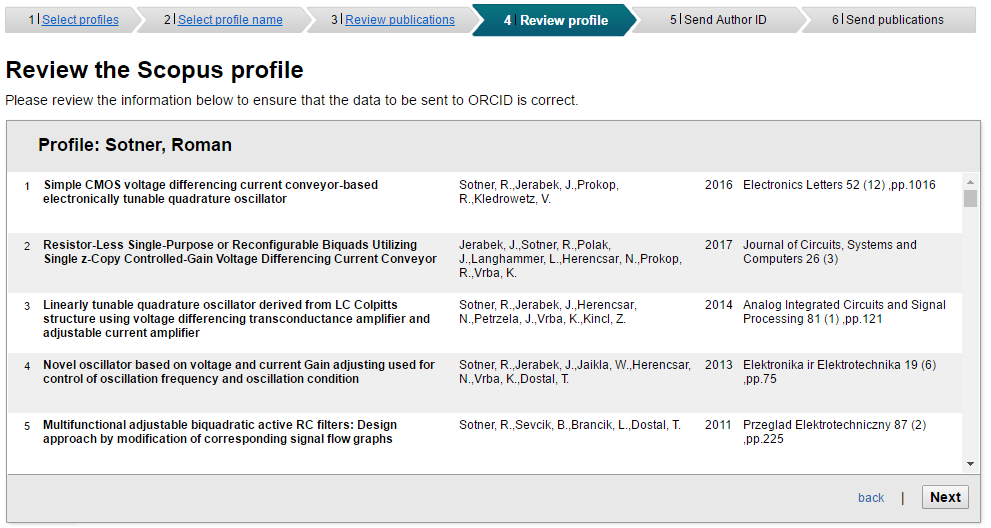 Pokud jste si jisti, že jsou zde již veškeré vaše publikace, klikněte na tlačítko Next.