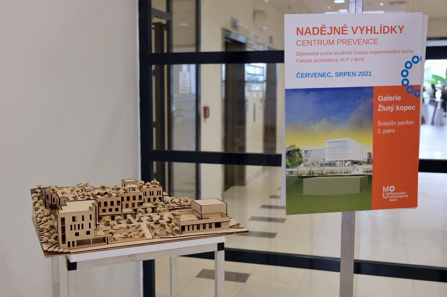 Budoucí podobu Centra onkologické prevence MOÚ ztvárnili absolventi Fakulty architektury VUT. Celkem deset diplomových prací bude v červenci a srpnu vystaveno v Galerii Žlutý kopec. Pacienti a návštěvníci uvidí také modely budov centra, které znázorňují možné architektonické řešení plánované výstavby.