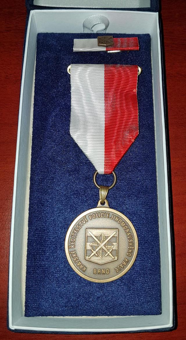 Medaili III. stupně ředitele Krajského ředitelství policie Jihomoravského kraje získal tento týden Martin Drahanský z Fakulty informačních technologií VUT. Z rukou náměstka krajského ředitele převzal ocenění za dlouhodobou nadstandardní a vynikající spolupráci se Službou kriminální policie a vyšetřování KŘP JmK. Tým profesora Drahanského se v rámci spolupráce zabýval například výzkumem v oblasti falzifikátů otisků prstů, detekce živosti a generování syntetických otisků s různými poškozeními i rozpoznávání 2D/3D obličeje. I když některé poznatky z výzkumu podléhají utajení, vybrané výsledky výzkumnící už představili nejen české policii a Národnímu bezpečnostnímu úřadu, ale i některým zahraničním bezpečnostním složkám. O práci výzkumné skupiny STRaDe si můžete přečíst například zde.Medaile III. stupně ředitele Krajského ředitelství policie Jihomoravského kraje | Autor: archiv Martina Drahanského