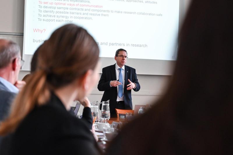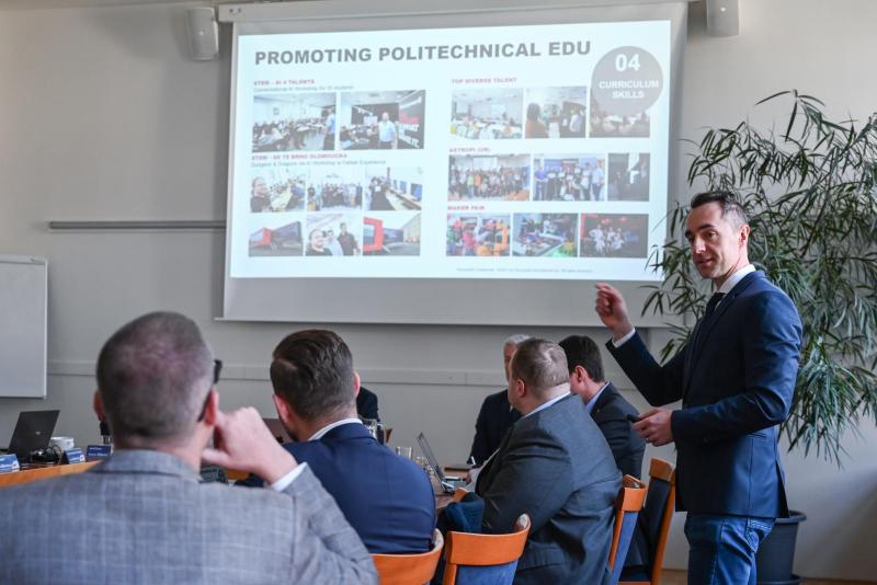 Tomáš Szaszi ze společnosti Honeywell | Autor: Martin HorváthMezi účastníky byla řada globálních technologických lídrů, jejichž zástupci prezentovali řešení v oblasti udržitelných technologií a svůj přístup k implementaci konceptu „Big Bets“ a hledání optimální formy spolupráce s VUT. Michal Lorenc ze společnosti onsemi představil inovativní technologii polovodičů na bázi karbidu křemíku a nabídl přehled aktuální spolupráce s VUT v oblasti výuky a vědecko výzkumné spolupráce. Společnost Y Soft Corporation představila svou vizi na příštích dvacet let, ve které dominuje sázka na umělou inteligenci a robotiku. Rudolf Melezinek, zástupce společnosti 3M, vyzdvihl firemní inovace pro oblasti cirkulární ekonomiky, dekarbonizace průmyslu a snahu společnosti 3M inspirovat ke změně. V prezentaci také ukázal, jak se firemní závazek udržitelnosti promítá do produktového designu, výroby nebo logistiky. Tomáš Szaszi z Honeywell představil koncept „Big Bets“ společnosti v oblasti využití vodíkových technologií pro rozvoj bezemisní letecké dopravy.Cees Admiraal, ředitel pro obchodní rozvoj v High Tech Campus v Eindhovenu, zástupce CTP, srovnával situaci Nizozemí před 30 lety se současnou situací ČR. Současné Česko je dle něj v mnohem lepší výchozí situaci než tehdejší Nizozemí, které se nacházelo v krizi. Společná pro obě země je však nutnost volby, kterým směrem se dál vydat, a která se později nedá opakovat. Pro toto rozhodování je velmi důležité poznat svoje silné stránky, soustředit se na rozvoj talentů, na transfer znalostí mezi akademickou a podnikovou sférou a nezapomínat ani na rozvoj regionů.Cees Admiraal z High Tech Campus v Eindhovenu | Autor: Martin HorváthMirek Mejtský z právní kanceláře Petyovský & Partners se ve svém příspěvku věnoval tématu migrace pro volný pohyb kvalifikované pracovní síly, kterému dnes dominuje i bezpečnostní pohled. Nastínil, jak oficiální migrační politika ČR není v souladu s požadavky na rozvoj ekonomiky s přidanou hodnotou založenou na inovacích. V jejím důsledku mají brněnské firmy jen omezený přístup ke globálnímu trhu s kvalifikovanou pracovní silou. ČR potřebuje chytrou migrační politiku, která umí rozlišovat, zda příchozí do země mohou být přínosem ekonomice. Doplnil jej Weston Stacey z AmCham, který zdůraznil, že bez migrace nejsou ani inovace. Bez přílivu technicky a přírodovědecky vzdělaných kapacit ze zahraničí nemusí být koncept „Big Bets“ úspěšný. Univerzity a podnikový sektor tak musí spolupracovat na urychlení reforem v této oblasti.Rektor VUT Ladislav Janíček | Autor: Martin HorváthNa závěr rektor VUT Ladislav Janíček vyzdvihl některá klíčová témata pro spolupráci univerzity a průmyslu v oblasti vzdělávání a výzkumu jako jsou například hledání cest k řešení poklesu zájmu o technické vzdělávání, který neodpovídá potřebě absolventů a významů průmyslu a jeho příspěvku k HDP v ČR. „Je důležité zamyslet se jak ve studijních programech podporovat více rozvoj kritického myšlení, kreativního myšlení, dovedností z projektového řízení či týmové spolupráce. Technické vysoké školy musí mnohem těsněji než tomu bylo možná v minulosti reflektovat společenské potřeby a posílit transfer znalostí včetně podpory rozvoje podnikavosti v technologické oblasti u svých akademických a výzkumných pracovníků, ale také u studentek a studentů. Společným cílem je vybudovat v České republice přední ekonomiku v Evropě postavenou na znalostech a inovacích,“ doplnil závěrem rektor VUT.