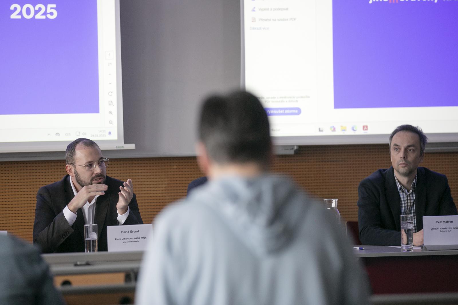 Úprav se dočká také objekt C3 Fakulty strojního inženýrství, ve kterém vznikne zázemí pro studentské spolky. Rekonstrukce tzv. těžké laboratorní haly vytvoří moderní studentské centrum pro univerzitní týmy, jako jsou TU Brno Racing, BUT Chicken Wings nebo Pneumobil Racing Team. „Ve stávajících prostorách haly vzniknou jednotlivé provozy jako v klasickém výrobním podniku nebo autodílně. Jedná se např. o brusírnu, CNC obrobnu, laminovnu, motorárnu či servisní plochu. Součástí projektu je i simulátor, vzdělávací centrum nebo showroom,“ doplňuje Petr Marvan z VUT. Předpokládané náklady jsou do 30 mil. Kč bez DPH.Akce pro potenciální dodavatele přiblížila klíčové projekty, které mají zásadní význam pro rozvoj regionu a modernizaci jeho infrastruktury. | Autor: Jiří Salik Sláma (MUNI)Na loňské zateplení objektu B05 Purkyňových kolejí naváže rekonstrukce sousední budovy B02. Tato akce zahrnuje kompletní obnovu fasády, výměnu oken a opravu střechy. Realizace je plánovaná na letní měsíce tohoto roku. Zdroje financování těchto projektů tvoří prostředky z programu reprodukce majetku hrazených ze státního rozpočtu (SR), prostředky z OP JAK a vlastní prostředky univerzity.Dokumenty včetně prezentací s investičními akcemi za VUT, JMK i MUNI najdete pod tímto odkazem.