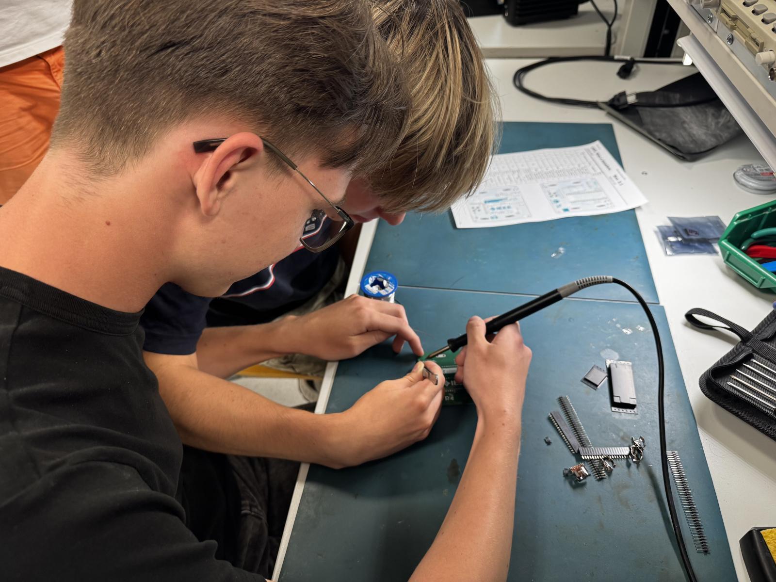 Program zahájilo praktické osazování prototypů telemetrických modulů. Všechny týmy se s úspěchem zhostily této náročné úlohy a dokázaly své elektronické obvody nejen oživit, ale také navázat první rádiovou komunikaci. Pro mnoho účastníků, kteří se předem neznali, šlo o první setkání s profesionální elektronikou v praxi.
