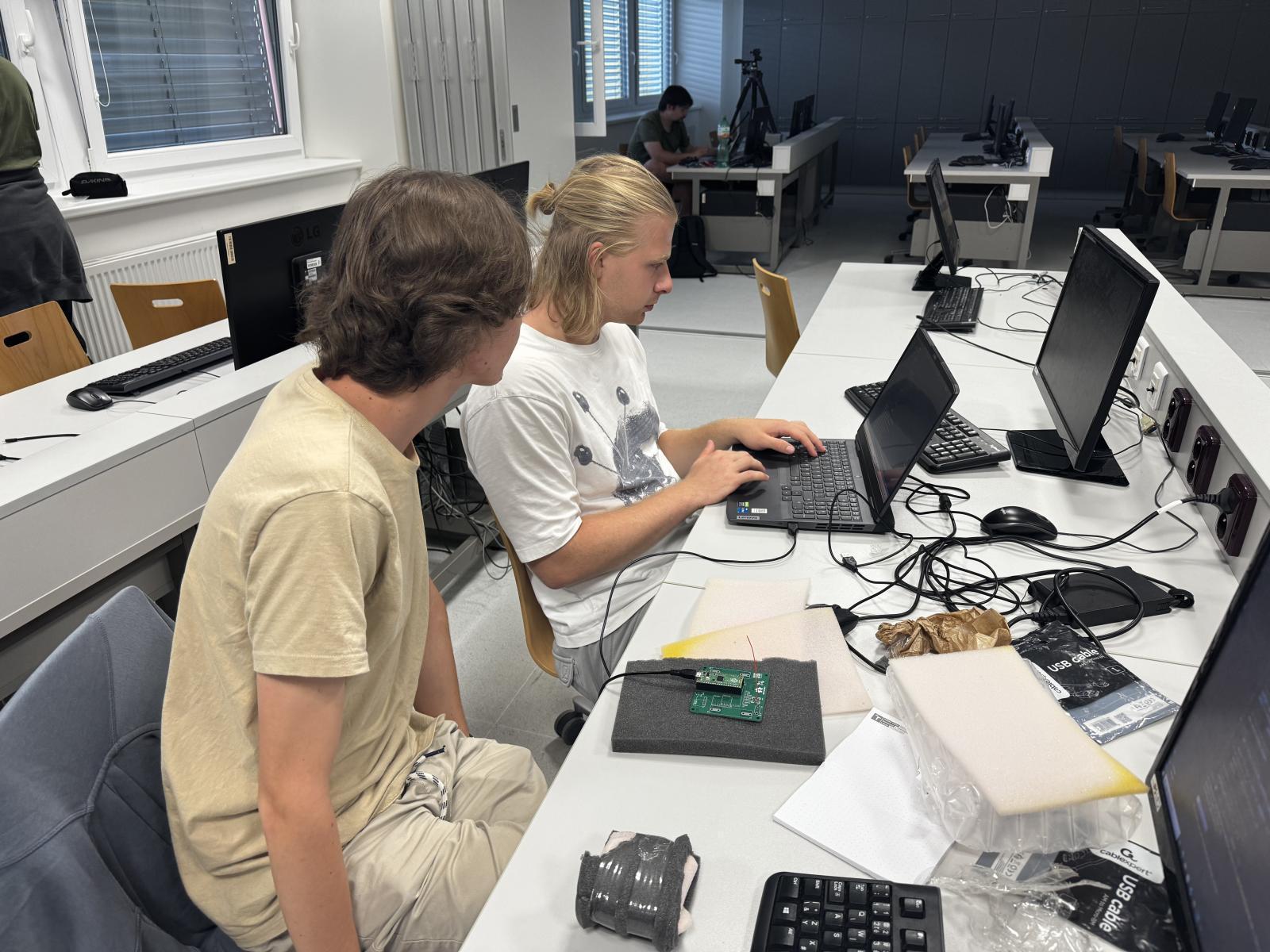 Workshop radioelektroniky 2025: Mise s dopadem. | Autor: Šimon SlobodaVe dnech 28.–30. července 2025 se Ústav radioelektroniky FEKT VUT proměnil v kreativní dílnu, kde středoškoláci pracující ve dvojicích objevovali svět radioelektroniky a družicových technologií. Třídenní workshop kombinoval teoretické znalosti s intenzivní praktickou prací a nabídl účastníkům autentický pohled na moderní inženýrské výzvy. To vše díky organizátorům akce Michalu Kubíčkovi a Aleši Povalačovi.