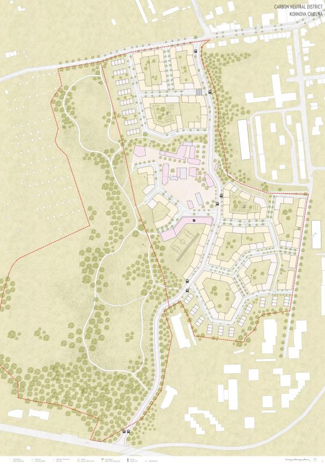 Autor: Patrícia PeckováV souladu s touto úvahou navrhla autorka práce novou uhlíkově neutrální čtvrť na Červeném kopci, který se nachází jihozápadně od středu města Brna. Návrh vychází z urbanistických principů, které pochází od rakouského urbanisty z 19. století Camillo Sitteho, a které autorka práce nově interpretuje pro současné potřeby města. Dalším určujícím momentem práce je propojování – různých urbanistických principů; nové čtvrti, starší zástavby a přírody; propojování lidí ve městě.