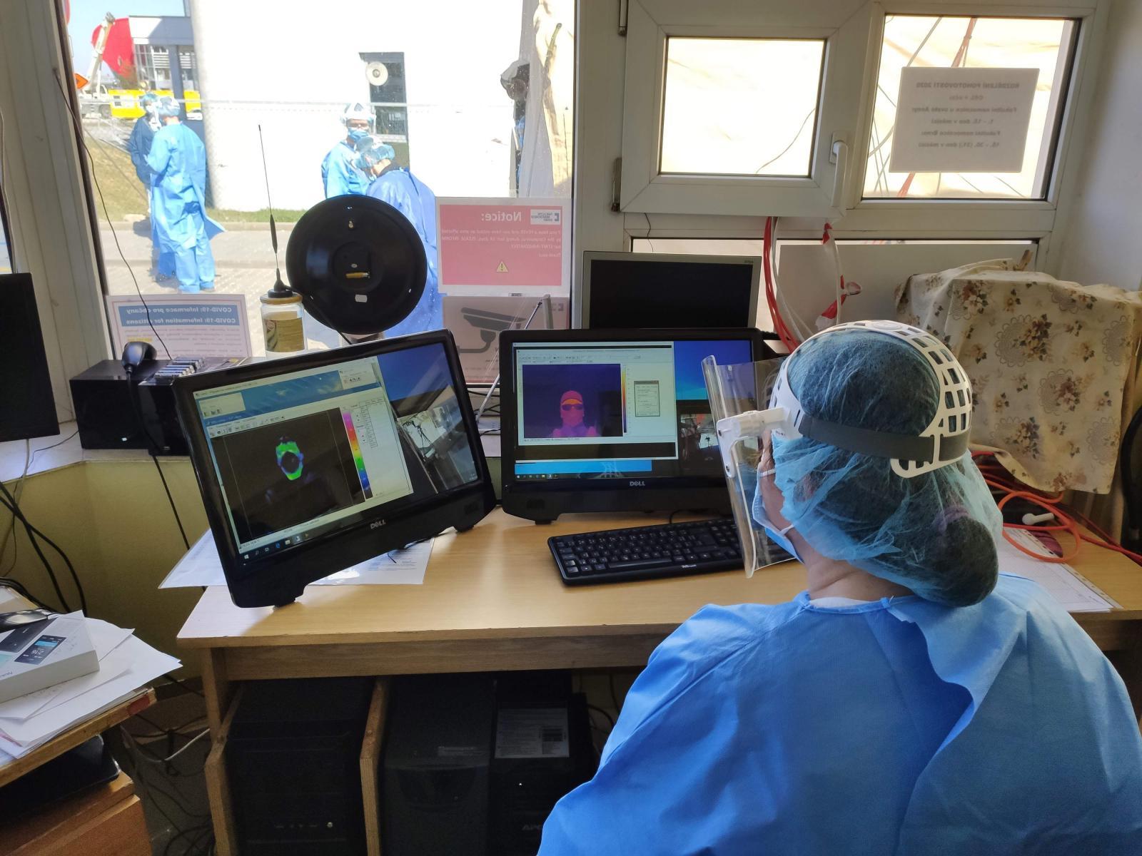 Termovizní kamery, které v minulosti sloužily například pro měření energetických zařízení v teplárnách nebo i v Jaderné elektrárně Dukovany, jsou nyní umístěny na dvou místech. První z nich je ve stanu, který slouží jako vstup do nemocnice pro pacienty, druhá pak v prostoru, kterým do nemocnice přicházejí zaměstnanci.